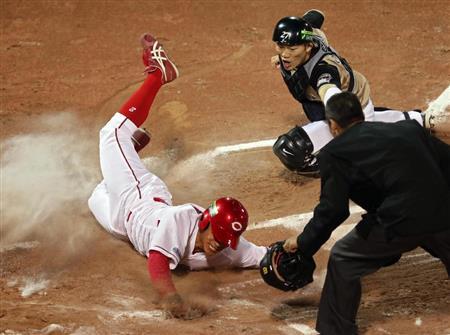 第2戦は広島・野村、日ハム増井の投げ合い。1-1の六回裏無死二塁、菊池のバスター左前打で田中が一気に生還。続く丸の送りバントなどで2点を加えたあと、エルドレッドが連日の本塁打を放ち、一気に4点を奪って試合を決めた。