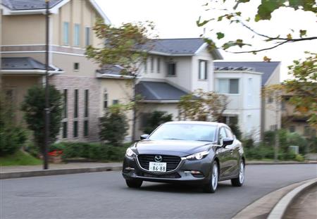 マツダが今夏、主力車種「アクセラ」にマイナーチェンジを実施した。目玉となる変更点の一つは、コーナリング時に車両の操縦性を高めて走りやすさに磨きをかけた「G-ベクタリング コントロール(GVC)」という機能。ほかにも装備や安全面など広範囲に改良を加えるなど、販売開始から4年目突入を目前にして大幅な進化を遂げたという。今回は2.2リッターのディーゼルターボエンジンを搭載するセダンに試乗。前編では走行性能を中心にチェックする。(文・大竹信生 写真・瀧誠四郎)