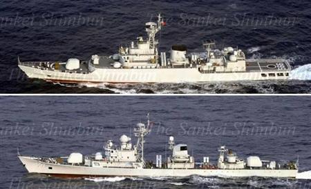 (2)日本海における、米海軍の駆逐艦《フィッツジェラルド》と海自護衛艦《ちょうかい》による共同訓練。