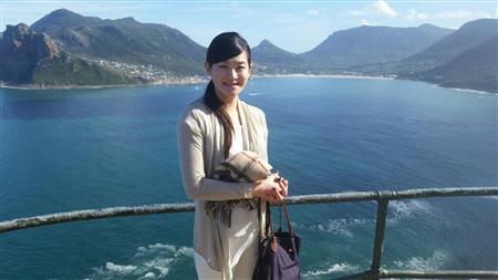 • 徳山さん。南アフリカのケープタウンの絶景ポイントで。お気に入りのフライト先