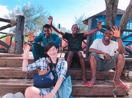 • 徳山さん。タンザニアの人たちと。みんな陽気