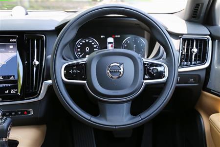 V90 クロスカントリーは、XC70の後を継ぐプレミアム・クロスオーバー。全長4940ミリ×全幅1905ミリ×全高1545ミリという、ボルボのフラッグシップ「90シリーズ」にふさわしい堂々たるボディサイズを誇る。