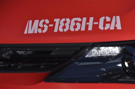 トヨタが市販する「シャア専用オーリス」のフロント部分=神戸市中央区の兵庫県立美術館(甘利慈撮影)