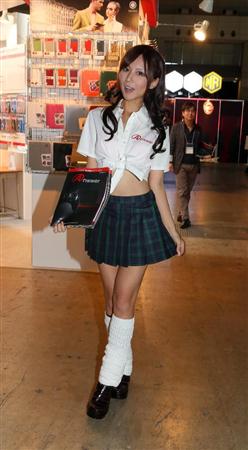東京ゲームショウ2013。週末コンテンツ「コンパニオン特集」アンサーの女性=19日、千葉市の幕張メッセ(小野淳一撮影)