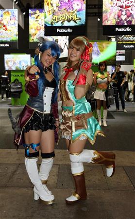 東京ゲームショウ2013。週末コンテンツ「コンパニオン特集」グリーの女性=19日、千葉市の幕張メッセ(小野淳一撮影)