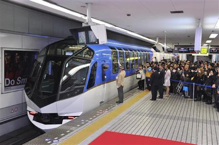 近鉄の観光特急「しまかぜ」が運行開始。出発する「しまかぜ」=21日午前、大阪市中央区・大阪難波駅(竹川禎一郎撮影)