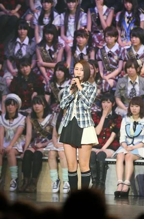 JKT48への完全移籍が決まり挨拶をする近野莉菜=24日午後、東京・青海(撮影・中井誠)