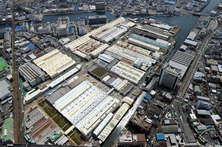 北陸新幹線用新型車両W7系を製造している川崎重工兵庫工場=7日午前11時13分、神戸市兵庫区(本社ヘリから、大塚聡彦撮影)