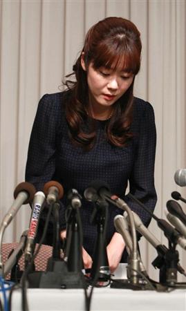 会見の最後にも、報道陣に向かって頭を下げる小保方晴子氏=9日午後、大阪市北区(松永渉平撮影)