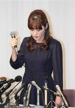 会見冒頭、立って挨拶をする小保方晴子さん=9日午後、大阪市北区(志儀駒貴撮影)