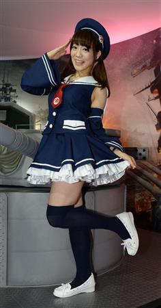 東京ゲームショウで会場を彩るコンパニオン「WORLD WARSHIPS」ブースにて=18日、千葉市美浜区の幕張メッセ(撮影・大橋純人)