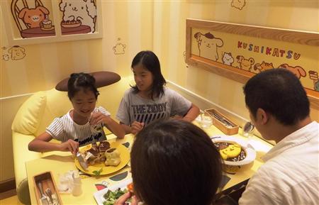 キャラクター「ポムポムプリン」をモチーフにしたカフェ。かわいい内装やメニューに子供たちも思わず笑顔=大阪市北区