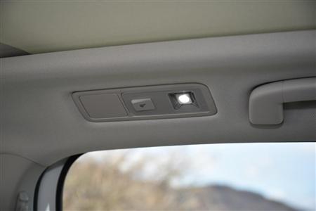 後席のルームランプは、ガラスルーフに追い込まれて、こんな位置に。ちょっとバス風情。ゴルフトゥーラン