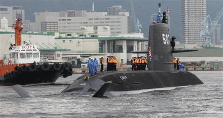 引き渡され出港する潜水艦「じんりゅう」=7日午後、神戸市兵庫区(彦野公太朗撮影)