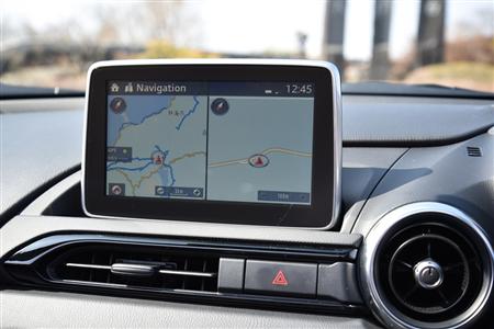 純正インフォテイメントシステム「マツダコネクト」の液晶画面。視界を遮らず、視点移動も最小限で済む配置。マツダロードスター