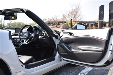 剛性確保のため、敷居(サイドシル)はちょっと高いが、間口は結構広く、慣れればメタボでもスッと乗り込めます。マツダロードスター