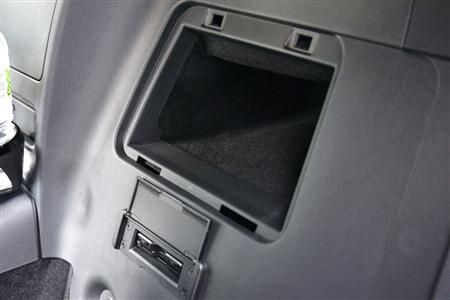 左右背もたれの後ろにも蓋付き収納スペース。運転中は使えないから、頻繁に出し入れしない小物向き。下にはETC用カードスロット。防犯用には鍵付きであってほしいところだが…マツダロードスター