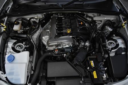 1.5リッターでターボなし。馬力もトルクも小さいが、1トンの軽量ボディとベストマッチ。レスポンスよく、素直に伸びあがる扱いやすい出力特性で乗る人を選ばない。マツダロードスター