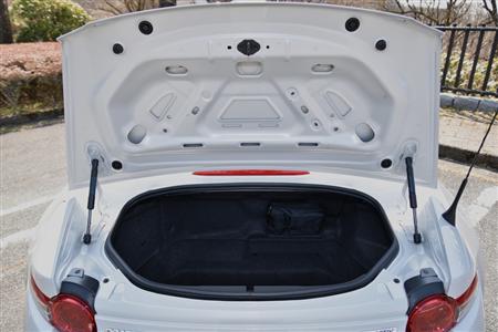 開口部が高いので重い荷物の出し入れには難あり。剛性確保を優先した設計だろうから、ここは我慢のしどころか。マツダロードスター