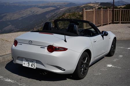 これこれ!この角度!と言いつつ、写真だと伝わらないかな。ドアパネルからリアフェンダーにつながる曲面が美しい。マツダロードスター