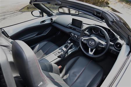 決して容積はけっして大きくはないキャビンだが、横方向は意外に余裕あり。何より室内高は無限大だ。マツダロードスター