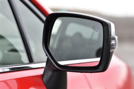死角に入りがちな左右の後続車の接近を知らせるアラートのオプション付き。スバル・レヴォーグ