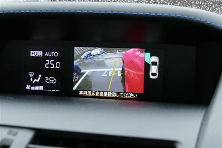 左前方の死角を室内のサブディスプレイに表示してくれる。小動物や子供の巻き込み防止に役立つほか、縦列駐車時の幅寄せなどにも使える。スバル・レヴォーグ