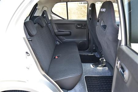 今どきの軽らしく後席広々なのは、座面が短くしてあるから。おかげで乗降性はいいけれど、サイドサポートのないベンチ形状ということもあって、中~長距離移動には向かない。とは言え、スポーツカーなのにしっかり4人乗れるということは間違いなく美点。アルトワークス