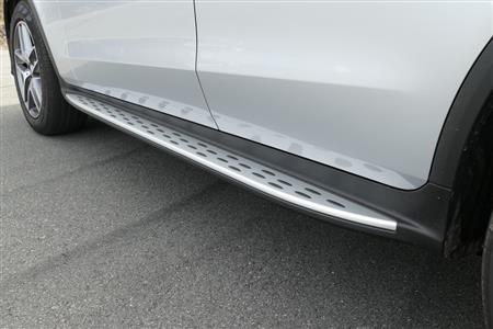 ルーフキャリア装着時、屋根上の荷物の積み下ろしに便利なステップ。スキーやサーフィンには欠かせない装備だが、乗り込む時脛が当たっちゃうのよね。メルセデス・ベンツGLC