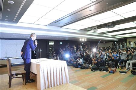 妻・小林麻央さんの病気について会見に臨む市川海老蔵さん(左)=9日、東京・銀座(撮影・蔵賢斗)