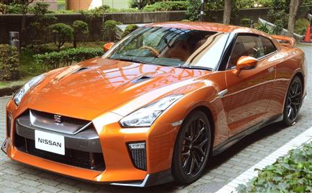 日産が開いたスポーツ車「NISSANGT-R」の実車展示=東京都港区(伴龍二撮影)