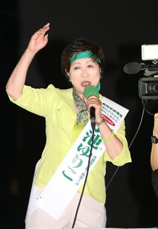 有権者に向け、支持を訴える都知事選候補の小池百合子氏=30日午後、東京都豊島区(古厩正樹撮影)