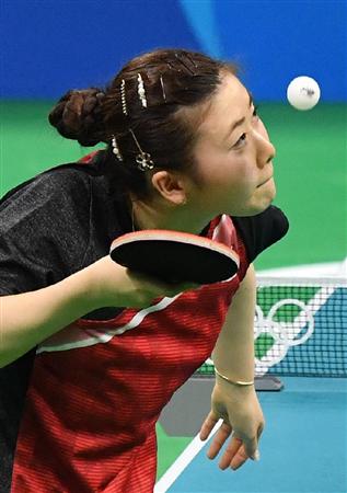 【リオデジャネイロ五輪2016】卓球女子団体戦3位決定戦第1試合第4セットプレーする福原愛=16日、リオ中央体育館(撮影・甘利慈)