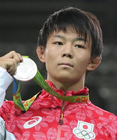 レスリング男子57キロ級で銀メダルを獲得した初出場の樋口黎(8月19日、大橋純人撮影)