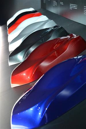 新型「NSX」のボディーカラー=25日午後、東京都江東区(寺河内美奈撮影)