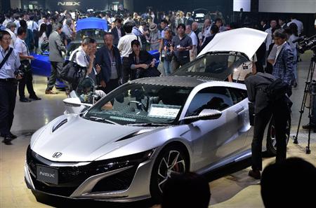 ホンダがスポーツ車新型「NSX」を発表した。会場には新型車が展示され、大勢の報道陣が詰めかけた=25日午前、東京都江東区(寺河内美奈撮影)