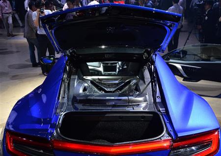 新型「NSX」のリアハッチを開けたところ=25日午後、東京都江東区(寺河内美奈撮影)