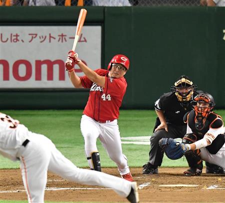 【巨人対広島】4回表、松山竜平がソロホームラン=東京ドーム(今野顕撮影)