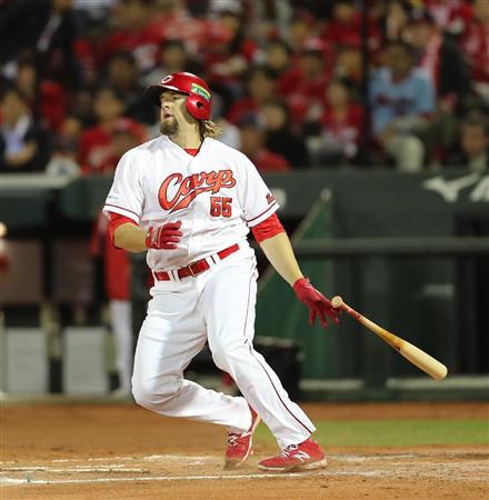 【日本シリーズ広島対日本ハム第2戦】2回左前安打で出塁する広島のエルドレッド=マツダスタジアム(吉澤良太撮影)