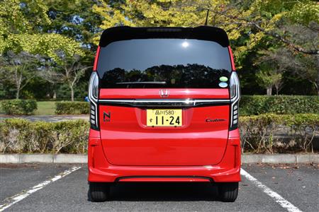 車名バッヂとナンバーを隠したら「次期型のステップワゴンです」と言われても区別がつかない。スーパーハイトの軽は普通車ミニバンの相似形であることがよくわかる。ホンダ・N-BOXカスタム