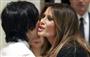 養殖真珠の説明を受ける安倍昭恵首相夫人(左)とメラニア米大統領夫人(中央)=5日、東京都中央区のミキモト銀座4丁目本店(AP)