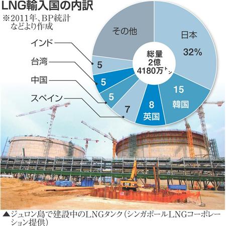 特にシンガポールは2013年前半にLNG(液化天然ガス)の輸入に乗りだすとともに先物市場の創設も打ち出しLNG取引の一大拠点化をもくろんでいる。日本は世界最大のLNG輸入国ながら長期安定調達を優先し、高値購入を強いられているのが現状。単なる消費国の立場にとどまらず、「バイイングパワー」を発揮して存在感を高める戦略が問われている。