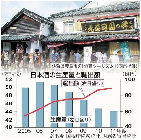 日本酒の輸出を官民連携で後押しする取り組みが本格的にスタートする。酒造業界や旅行会社、インターネット関連ベンチャーなどの民間企業と観光・商工団体や地方自治体、関係省庁が参加し、3月下旬に酒蔵ツーリズム推進協議会を観光庁の主導で結成。日本酒を地域の観光資源に育てて輸出拡大を図るとともに、訪日外国人の増加を狙う。観光資源としての魅力を併せ持つことで、廃業が続く酒造業界の底上げにもつながるとの期待も膨らんでいる。