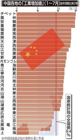 中国国家統計局が公表している工業統計に、生産した工業製品の付加価値の増減を表す「工業増加値」という指標がある。工業活動の成長を知る手段として、中国当局が重視するとされてきた。ところが、国家統計局による中央発表と地方が発表する値に大きな差があり、日本のシンクタンクは地方発表の指標が水増しされている疑いを指摘する。国内総生産(GDP)、貿易統計など、中国発表の統計はとにかく信頼性が低いが、工業製品でも同様だとすれば虚勢病は深刻だ。