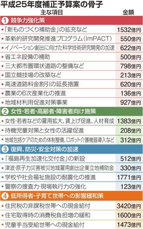 政府が12日に決めた平成25年度補正予算案に盛り込まれた暮らしや経済に関わる施策について、Q&A方式でまとめた。