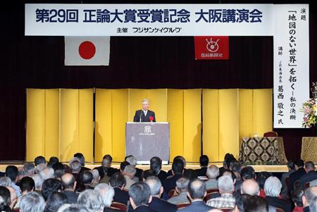 第29回「正論大賞」(フジサンケイグループ主催)に輝いたJR東海会長の葛西敬之氏の受賞記念大阪講演会が26日、大阪市北区のリーガロイヤルホテルで約550人が出席して、開かれた。葛西氏は「『地図のない世界』を拓く~私の決断」をテーマに、日米同盟や集団的自衛権行使など、世界情勢における日本のポジションについて語った。