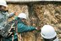 日本原子力発電敦賀原発2号機近くの地層を調べる原子力規制委の有識者調査団=今年1月20日、福井県敦賀市(代表撮影)【拡大】