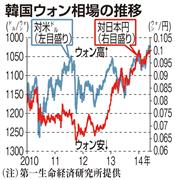 韓国当局は為替介入によってウォンを一定水準に誘導してきた。ただ、米財務省が4月中旬、議会に提出した為替報告書などで韓国の為替介入に対する牽制(けんせい)姿勢を強めており、今後は「1ドル=1000ウォンを割る水準まで次第にウォン高が進む」(為替アナリスト)との予測も出ている。