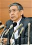 金融政策決定会合に向かう日銀の黒田総裁=13日午前、日銀本店【拡大】