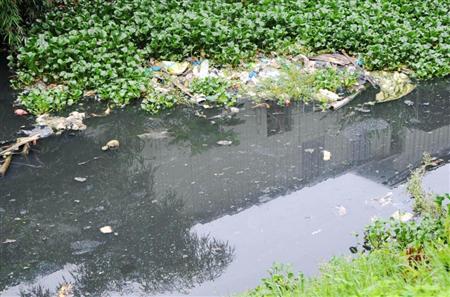 黒く変色し悪臭を放つ福建省福州市の小川(中国新聞社)【拡大】